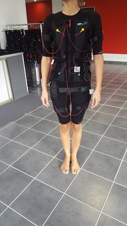 On doit enfiler une tenue très glamour qui comprend un système d’électrodes et on nous branche à la machine. Ensuite, on suit les instructions et/ou le coach pendant 20 minutes. Ce qui équivaudrait à 4h de sport…