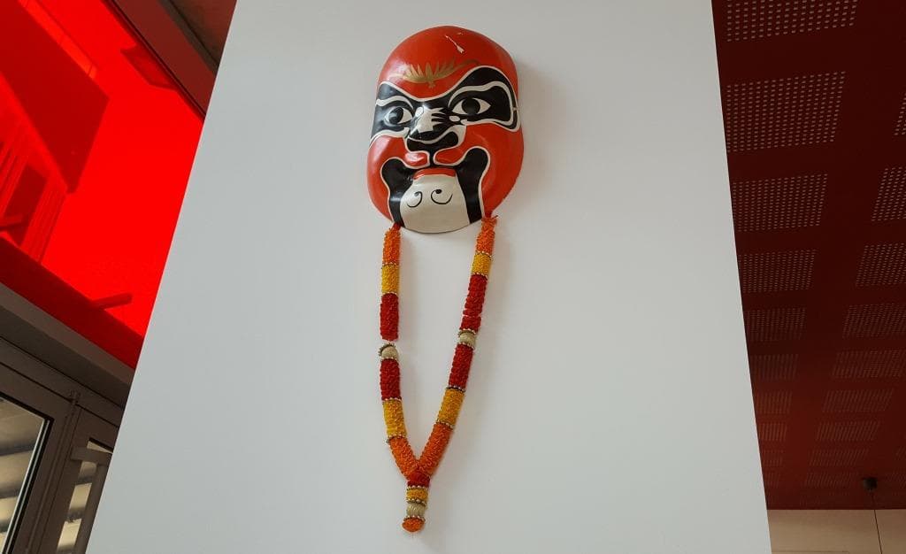 Replacer l’univers de la Kitchenette dans un bâtiment neuf, ça aurait pu être chelou mais le résultat est très réussi. La version n°2 est tout de même plus sobre et on est passé du rose au rouge. Ils en ont profité pour créer un logo, réalisé par Lowbrow Tatoo avec toujours l’Asie en fil rouge. Il est décliné sur les bâches de la terrasse mais aussi en une grande fresque dans la salle, avec le menu du jour.