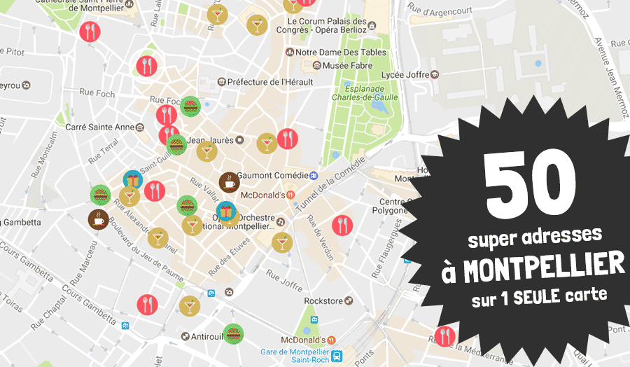 Bah oui on s’est dit que ce serait plus pratique de réunir sur une seule et même carte tous les endroits sympas qu’on a découvert ces derniers temps en arpentant la ville en quête de bons plans. Ça vaut aussi pour ceux qui se trouvent en dehors de la ville (on aime bien aller faire un tour à la plage ou dans l’arrière pays montpelliérain de temps en temps).
