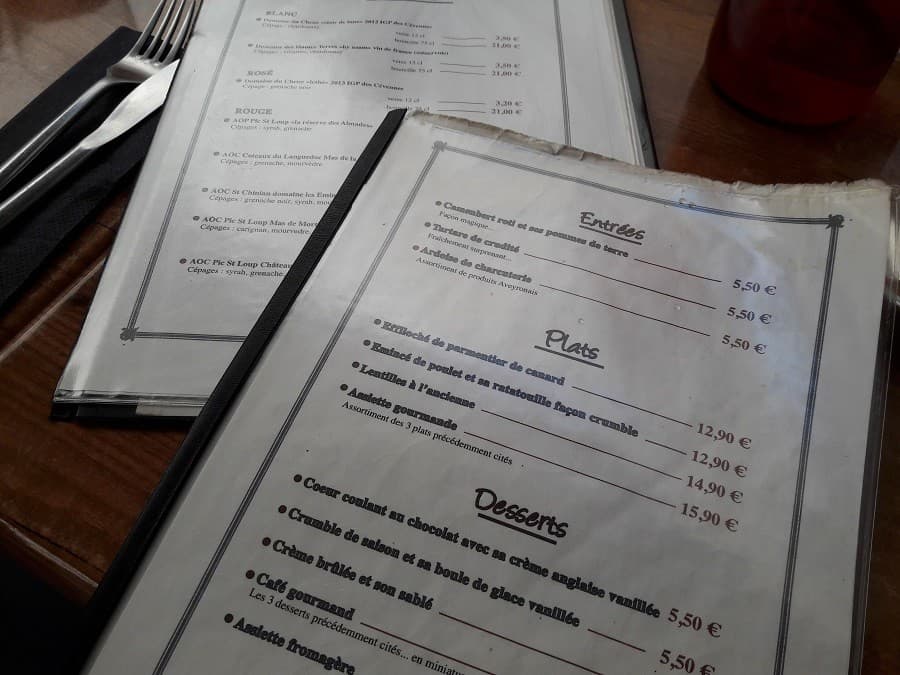 Je m’en tire pour 17€50 pour 1 entrée + 1 plat, très bon rapport qualité prix pour un plat fait-maison avec des produits du terroir.