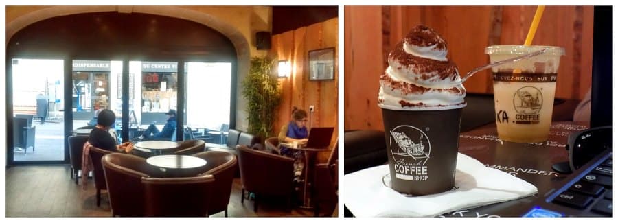 Les – : les chaises sont pas hyper confortables (ouille les fefesses), il n’y a que quelques prises et comme il est situé sur une rue très fréquentée on entends le brouhaha du dehors