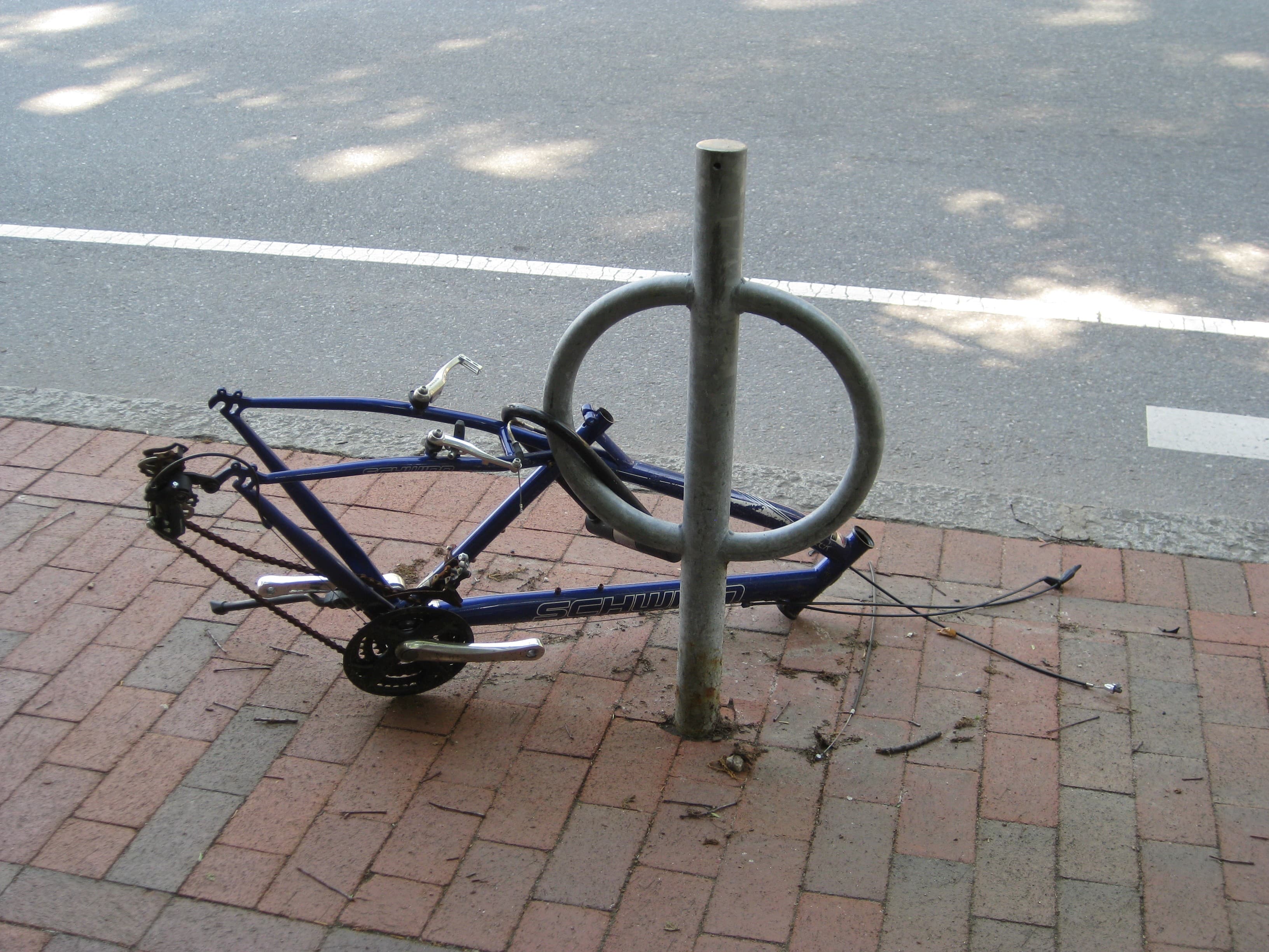C’est une scène bien triste mais hélas coutumière du centre ville : on voit souvent des vélos désossés (et on vous parle pas des vélos de monsieur BMX là les p’tites mouettes) dont il ne reste que l’armature. Plus de guidon, plus de roues, plus de pédales … plus rien. Un squelette de vélo quoi.