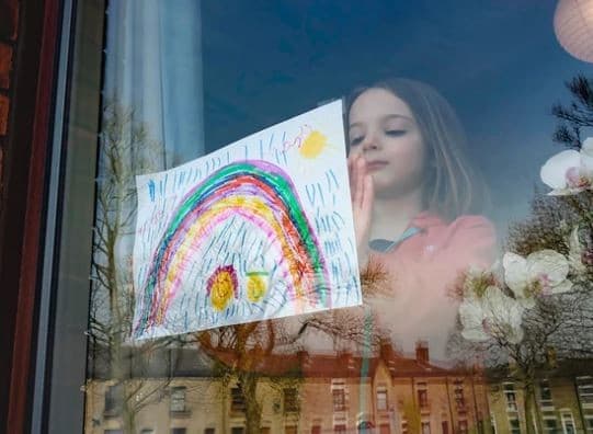 Ça rejoint un peu le point n°3 : histoire d’encourager leurs voisins mais aussi les livreurs et autres postiers, des enfants de divers pays ont commencé à accrocher des dessins à leurs fenêtres, le tout accompagné de messages du genre « on s’en sortira » ou « soyez prudents« . Un beau moyen de se mettre du baume au cœur quand on est cloîtré chez soi ou quand on est amené a se déplacer !