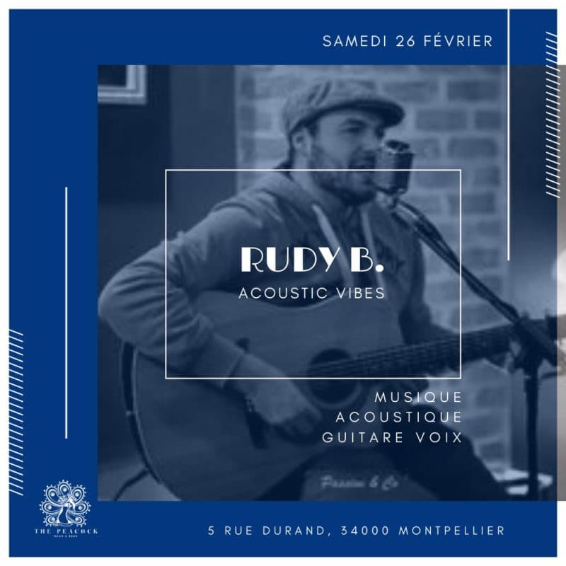 GRATUIT On file au Peacock le bar qui a un petit air de Central Perk pour un petit concert acoustique tout en douceur. Tu ne connais pas encore Rudy B, l’artistes Blues / Folk habitué des bars montpellierains ? Ben c’est l’occasion. Le concert commence à 21h mais autant y être un peu avant pour profiter de l’Happy Hour (de 17h à 21h) et se mettre dans l’ambiance